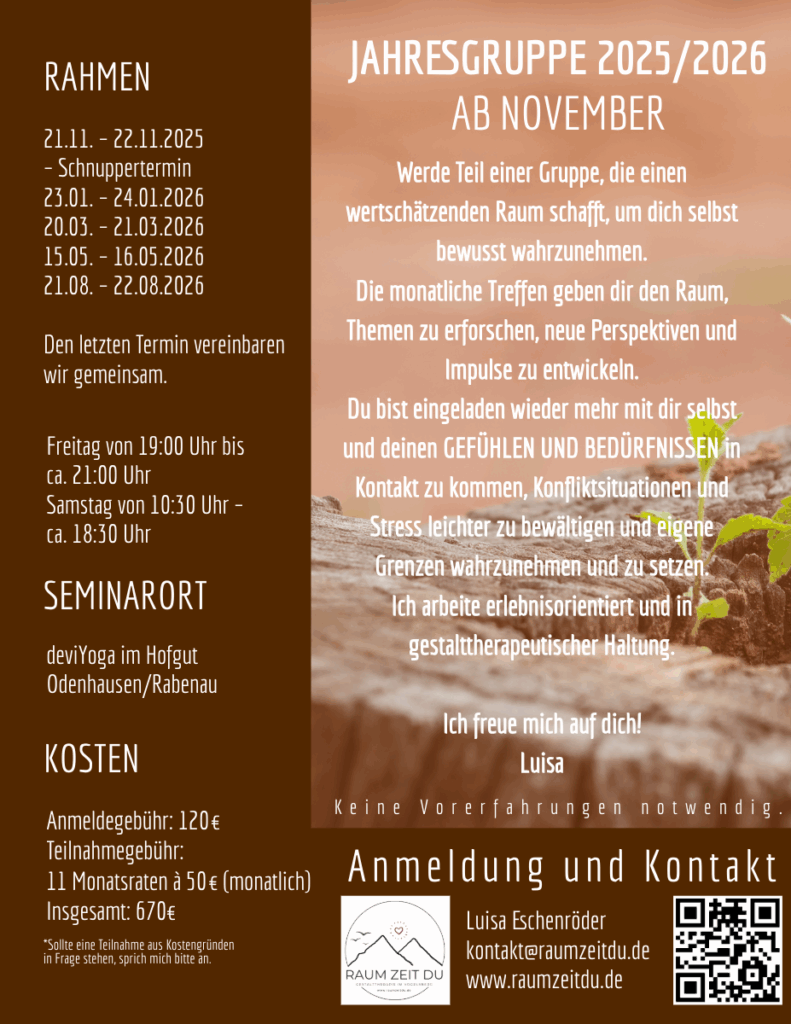 Gestalt ist keine Technik, kein therapeutisches Schnellverfahren, sondern ein ernsthafter Weg sich selbst zu finden und zu wachsen. Wachstum ist aber ein Prozess, der Zeit braucht.